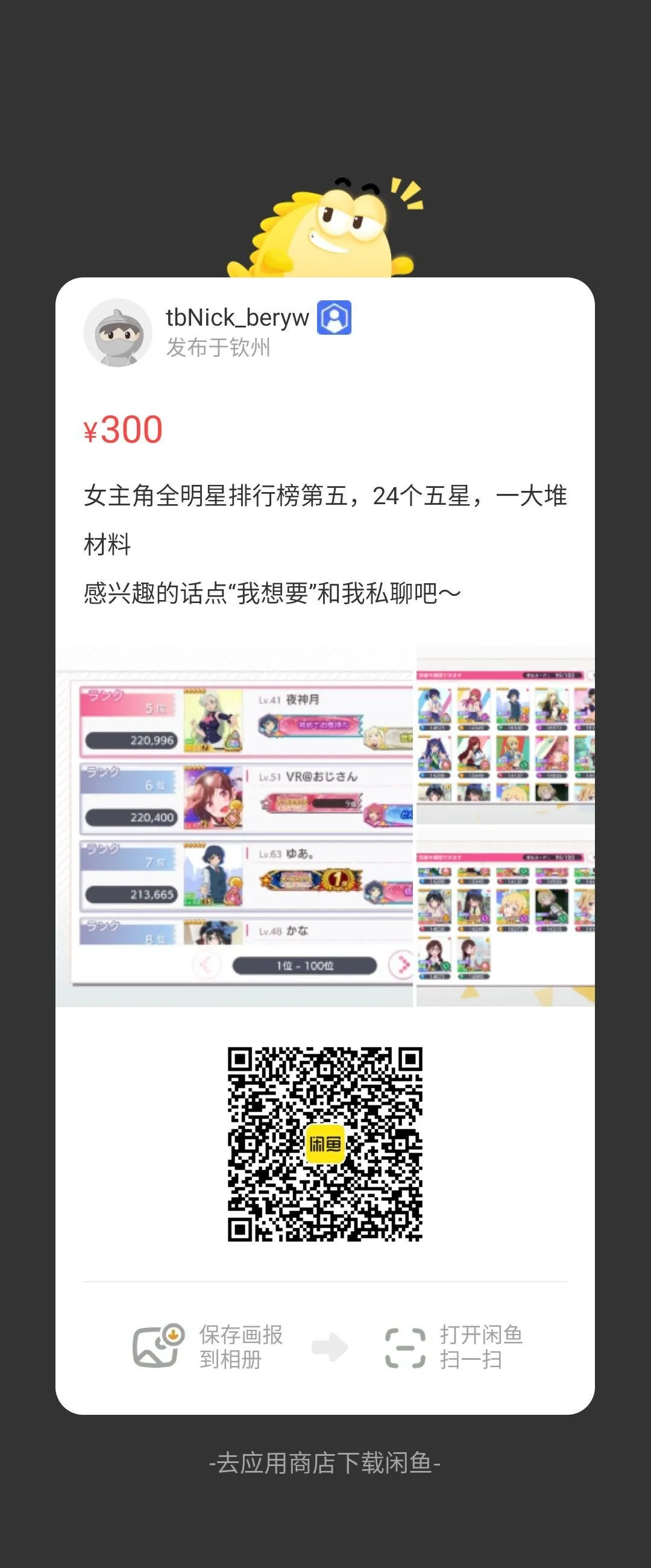 創建了遊戲名片,並曬了1張卡