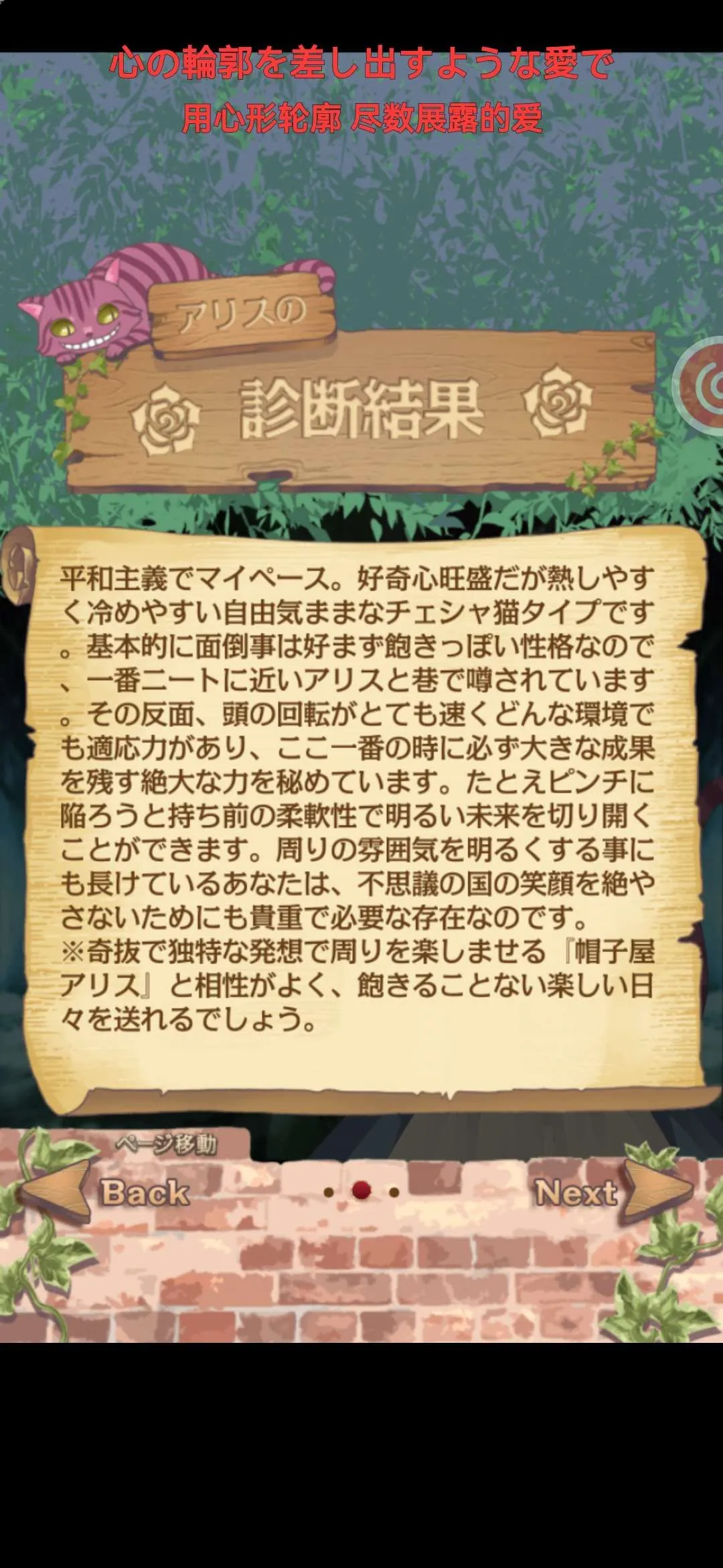 簡介: 最喜欢柴郡猫,所以被测出是柴郡猫爱丽丝的时候很开心。 感觉还蛮准的。