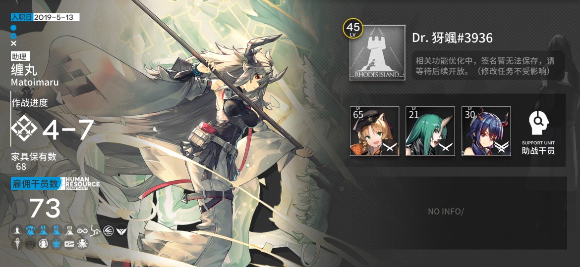 角色名: 想跳槽的龍門近衛局的刀客特