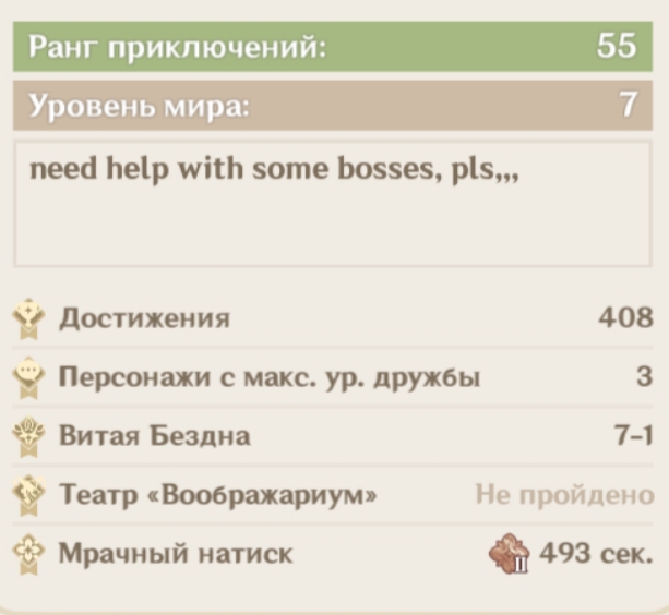 ОБМЕНЯЮ АКК НА ДРУГОЙ АКК В ГЕНШЕ С 🫧🌊ФУРИНОЙ🌊🫧. акк на Европе, ранг и персонажи - на скринах. всё остальное в лс в тг можем обсудить (@rin_uuu). приор немного: акк желательно с не совсем уж низким рангом, и чтобы была хотя б только одна прокачанная более-менее пачка (хоть из четвёрок, мне плевать, чисто чтоб мировые мобы не душили). но из основного: мне всё равно, какие у вас будут персонажи, хоть их вообще мало будет. мне нужна только Фурина, я просто хочу бегать за свою любимую девочку,,,