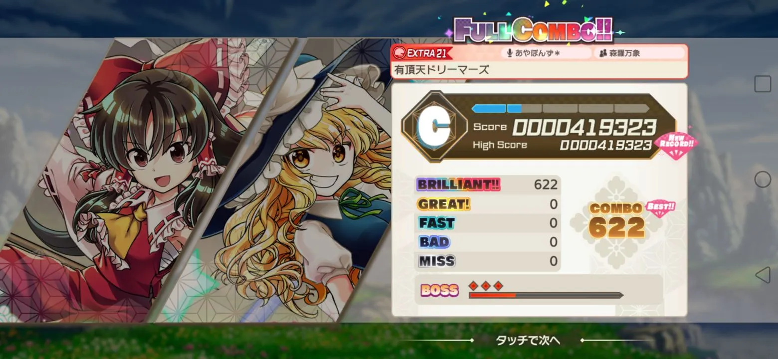 언노운X의 첫 동방프로젝트 ip를 사용한 리듬게임입니다! 일러스트 퀄리티도 괜찮고 레어(R)를 제외한 나머지 SR, SSR 카드들은 각각 다른 일러스트레이터분들이 그리신 일러스트라서 하나하나씩 모으고 보는 재미도 있겠네요!
